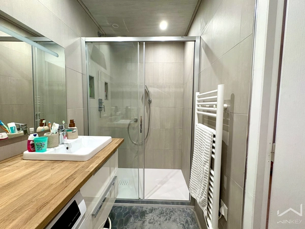 Dès l'entrée, vous apprécierez la luminosité naturelle et l'optimisation des espaces. La cuisine ouverte, moderne et équipée, bénéficie de matériaux de qualité et s'intègre parfaitement au séjour cosy, ouvrant sur un agréable balcon idéal pour profiter des beaux jours.