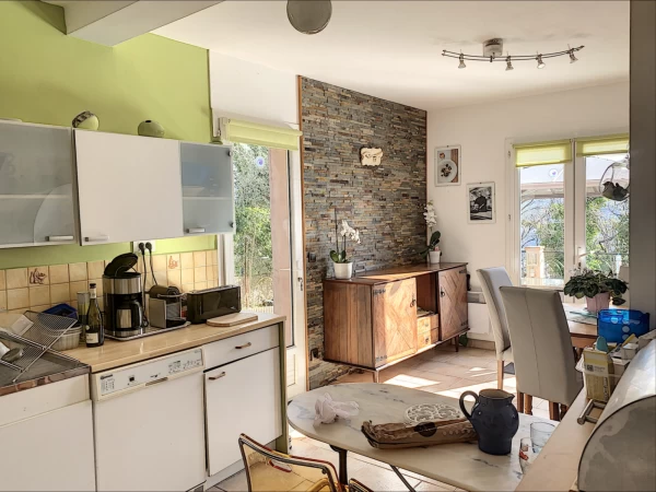 Maison discrètement mitoyenne sur deux niveaux dans le paisible quartier Jean Natale, la maison n'est pas visible de la route.