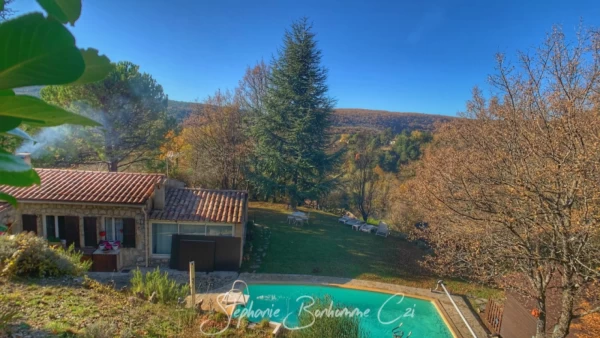 Le parc de Cheiron permet une quiétude de vie, à quelques pas des sentiers de randonnées, 2 cabanons dont 1 transformé en chambre pour invités avec piscine idéalement exposée