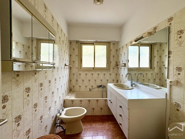 Il se compose d'une entrée avec toilettes invités, double séjour/salle à manger, une cuisine séparée donnant sur l'extérieur, un dégagement allant vers une salle de bain avec wc, 2 chambres ayant toutes deux accès vers l'extérieur.