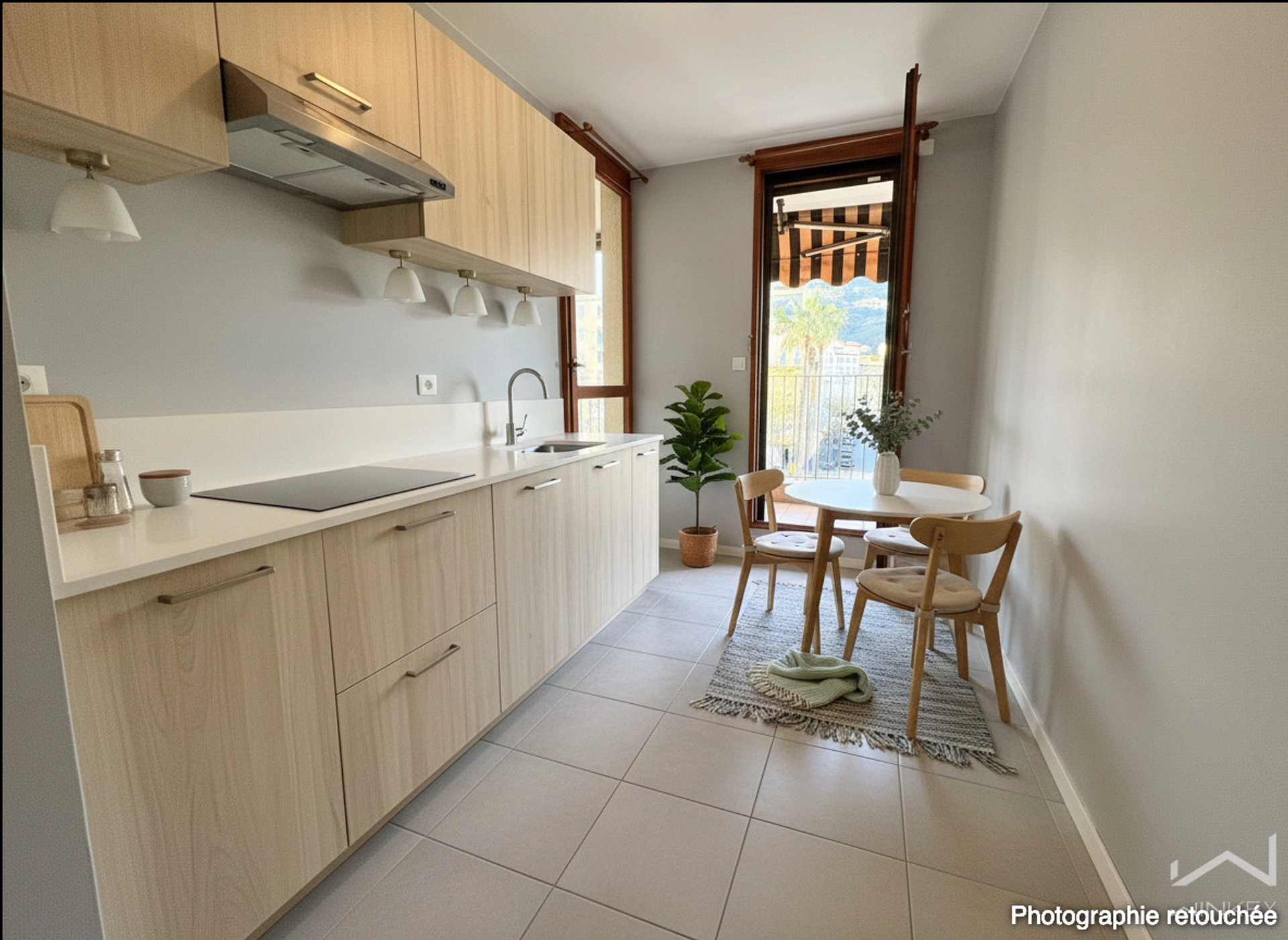 Il se compose d'une pièce de vie agréable ouvrant sur un balcon exposé Nord-Ouest, une cuisine séparée ainsi que d'une loggia fermée, parfait pour un espace de rangement ou un coin bureau.