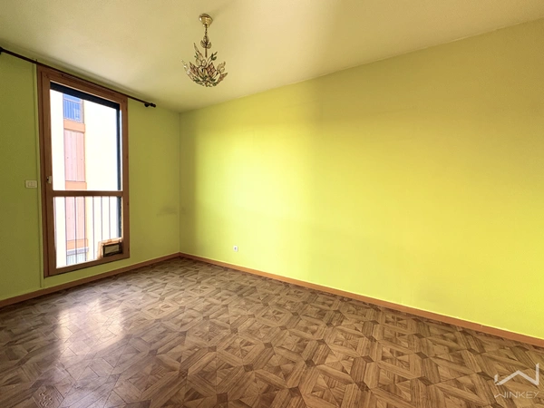 Situé au 3e étage avec ascenseur, cet appartement T3 de plus de 66 m2 Carrez (72 m2 au sol) offre de beaux volumes et un fort potentiel après travaux.