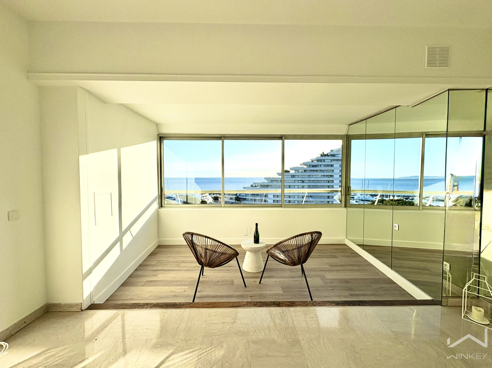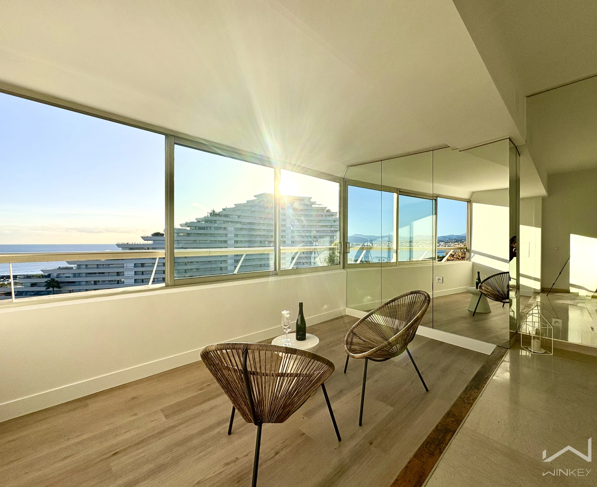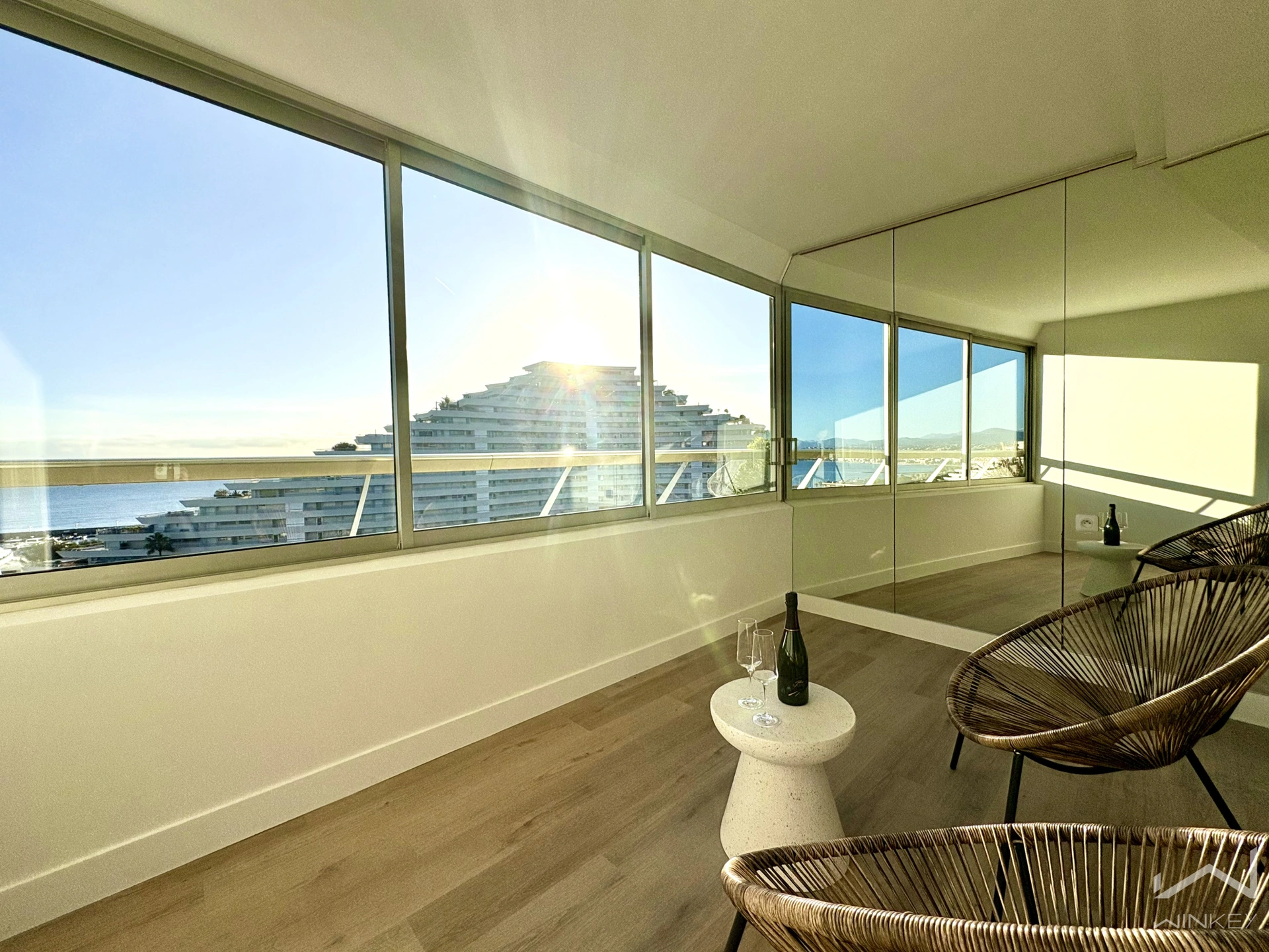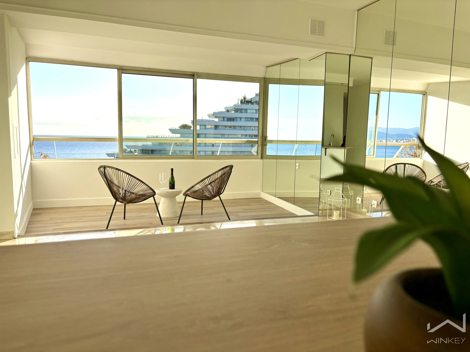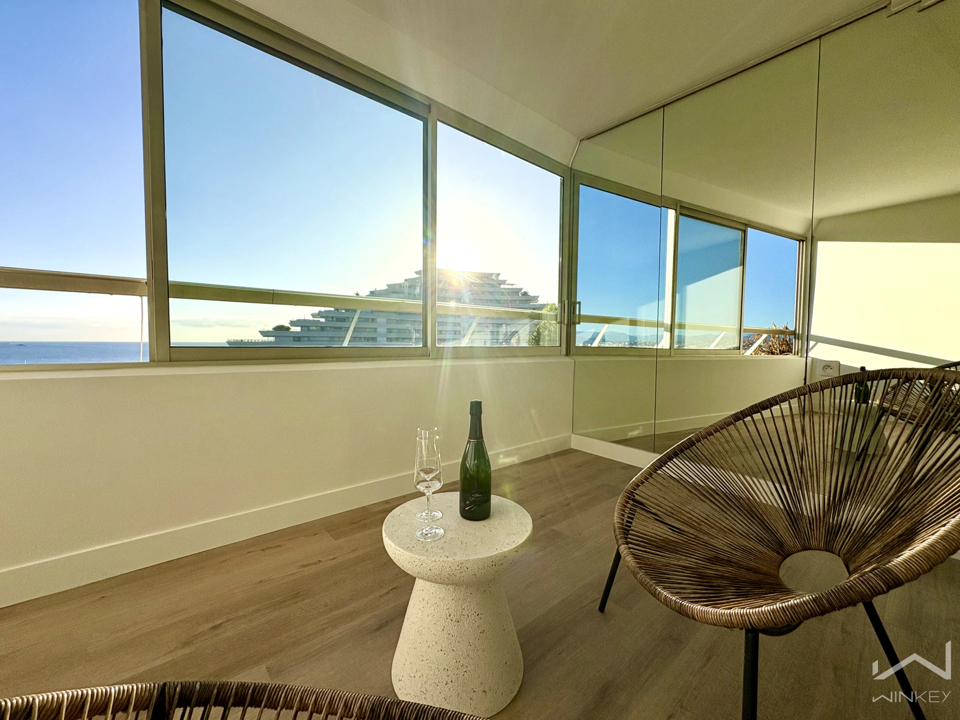 Loggia fermée exposée Sud-Est, idéale pour profiter de la vue mer en toute saison