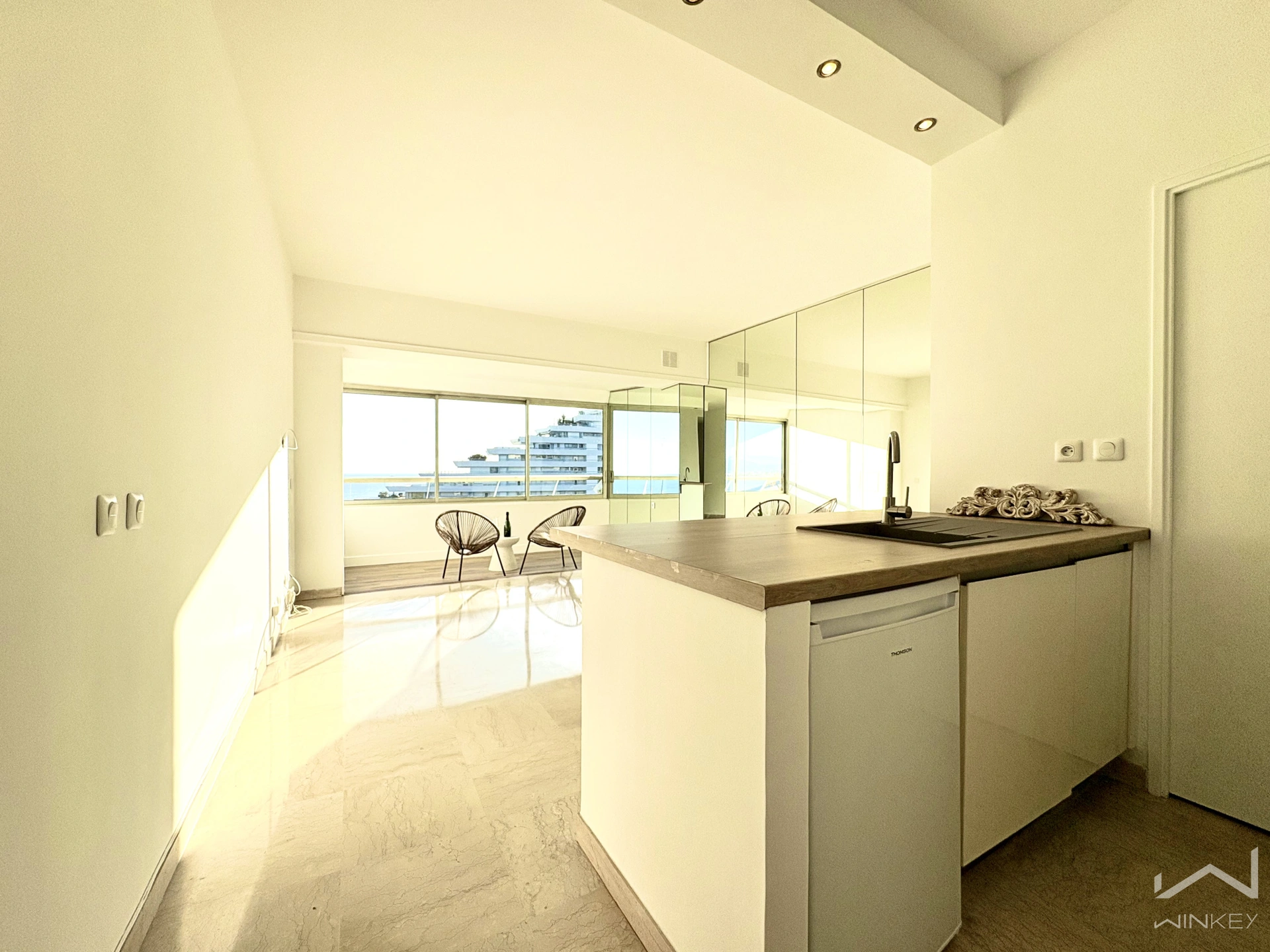 Au sein de la mythique Marina Baie des Anges, ensemble immobilier classé au patrimoine du XXe siècle, découvrez ce superbe et confortable 2 pièces entièrement rénové, situé au 8e étage du bâtiment Le Baronnet.